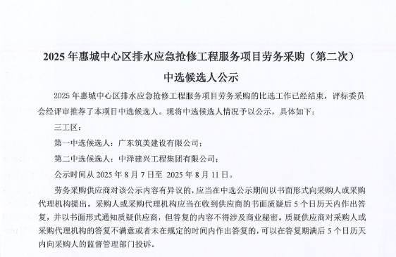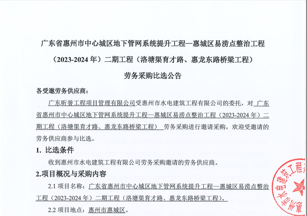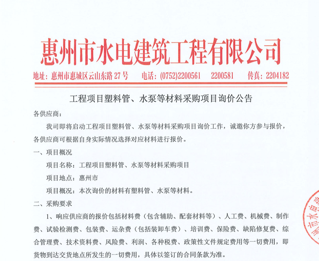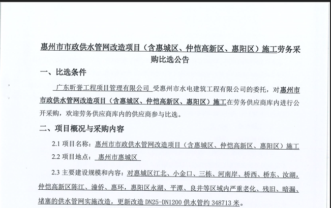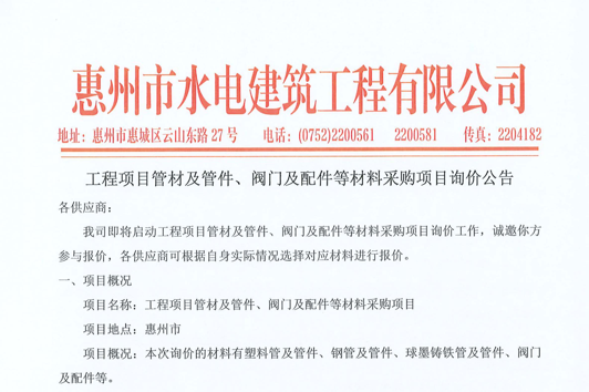 惠州市水電建筑工程有限公司成立于一九六四年四月,隸屬惠州市水務(wù)集團有限公司,是一家國有綜合性施工企業(yè),主營水利水電工程、房屋建筑、市政工程等施工業(yè)務(wù)。公司擁有水利水電工程施工總承包一級、建筑工程施工總承包一級、市政公用工程施工總承包一級、公路工程施工總承包三級,公路路基、路面及建筑裝修裝飾專業(yè)承包二級,環(huán)保工程、機電安裝、河湖整治、輸變電工程專業(yè)承包三級等經(jīng)營資質(zhì)……